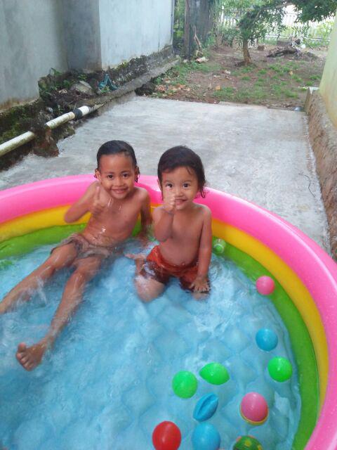 Bagian dasar kolam renang ini tebal dan membal bisa memantul sehingga aman untuk anak beraktivitas.